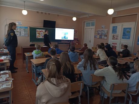 старший лейтенант поліції Ушакова В.В. провела лекцію до вказаної акції і розповіла учням 6-Б класу про види насильства.